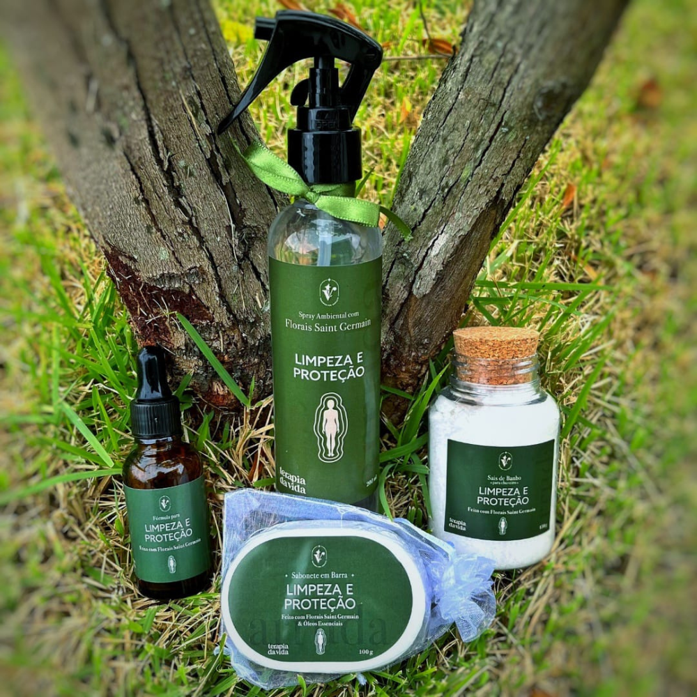 · Spray de Ambiente Limpeza Energética + Sais de Banho Energético para Chuveiro + Sabonete Corporal Energético + Floral Limpeza e Proteção